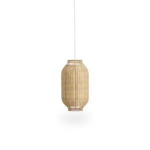 Unser Kou-Lampenschirm wurde von Jin Kuramoto entworfen. Der Lampenschirm ist aus indonesischem Rattan handgefertigt und hat einen inneren Eisenrahmen, der ihm ein gutes Gewicht verleiht und dafür sorgt, dass er schön und stabil hängt.
