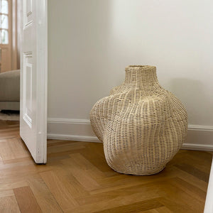 Solaris ist ein dekorativer Korb mit weichen, organischen Formen, der sich gut für getrocknete oder künstliche Blumen eignet. Der Korb ist aus dem Naturmaterial Rattan handgeflochten, daher können leichte Farb- und Formabweichungen auftreten.