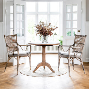 Bitte beachten Sie: Unsere Teakholzprodukte für den Innenbereich sind nicht fleckenbeständig, da wir der Meinung sind, dass die Möbel am besten aussehen, wenn sie eine rustikale Patina aufweisen, wie sie in französischen Bistros mit Flecken, Kreisen und anderen Zeichen der guten Zeiten zu finden ist. Um die einheitliche Farbe der Möbel zu erhalten, sollten diese mit Tischsets oder Ähnlichem geschützt werden.