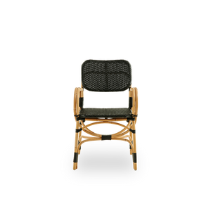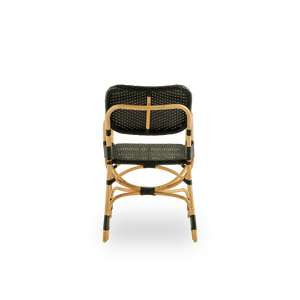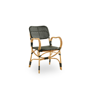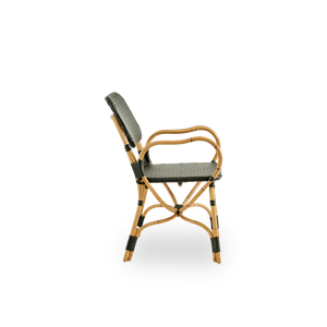 Der Bistrostuhl ist mit schönen geschwungenen Armlehnen gestaltet, die guten Komfort und zusätzliche Unterstützung bieten. Der Stuhl ist ein raffinierter Esszimmerstuhl für Brasserien, Cafés oder Restaurants – eignet sich aber auch hervorragend für das eigene Zuhause. Das Möbelstück ist für den Innenbereich konzipiert; kann aber auch auf überdachten Terrassen oder unter einem Sonnenschirm draußen genutzt werden. Wichtig dabei ist jedoch stets sicherzustellen, dass das Möbel nach Feuchtigkeitseinwirkung vollständig trocknen kann.