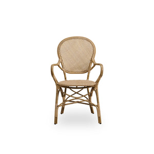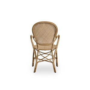 Der Rossini Exterior Stuhl ist handgefertigt aus Aluminium und ArtFibre. Diese Materialien sind UV- und witterungsbeständig und die Möbel können daher das ganze Jahr über im Freien stehen.