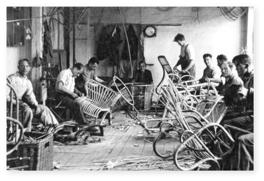Diese Möbel wurden von Robert W. (1825-1902) entworfen, der als der beste Korbmacher Dänemarks bekannt war. Viele Architekten kamen in seine Werkstatt, um Know-how und Verständnis für Weberei und Korbwaren zu erlangen. Darunter waren die dänischen Architekten Arne Jacobsen, Viggo Boesen, Nanna & Jørgen Ditzel und Kay Bojesen, die alle viele ihrer Prototypen in der Werkstatt von Robert W. in Kopenhagen anfertigen ließen. Lesen Sie hier mehr über Robert W.
