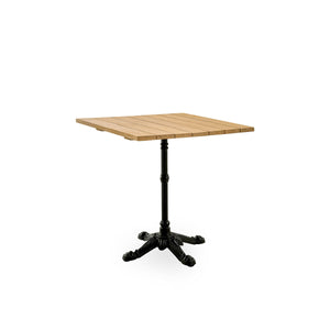 Das Tischgestell besteht aus pulverbeschichtetem Gusseisen und die Tischplatte aus Teakholz, das für seine hohe Festigkeit und seinen schönen Glanz bekannt ist. Durch den natürlichen Ölgehalt des Teakholzes sind unsere Teakholz-Produkte sehr langlebig, widerstandsfähig gegen Wind und Wetter und werden nicht von Insekten und Fäulnis befallen.