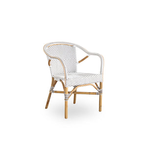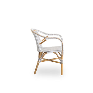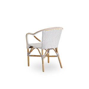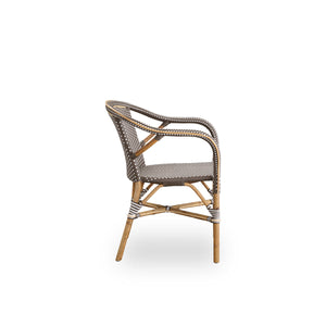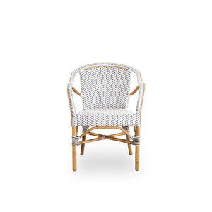 Die Affäire-Kollektion ist inspiriert von unseren eigenen Entwürfen der 1950er Jahre sowie den charmanten Bistrostühlen, die überall in Paris zu finden sind. Unsere Affäire-Stühle werden mit dem fantastischen ArtFibre umflochten, das in einer großen Farbvielfalt erhältlich ist und sich auf unzählige Arten kombinieren lässt. ArtFibre ist eine künstliche Faser aus pflegefreiem Polyethylen, die den UV-Strahlen der Sonne standhält. Die Kombination aus ArtFibre und Rattan sorgt für Flexibilität, Stabilität und Komfort. Die verschiedenen Flechtmuster schaffen eine gemütliche Atmosphäre und ermöglichen ein einzigartiges Erscheinungsbild. Dieser elegante Esszimmerstuhl wurde für Brasserien, Cafés und Restaurants entworfen, eignet sich aber auch für den privaten Gebrauch. Der Stuhl kann im Außenbereich unter Überdachung verwendet werden; er sollte jedoch nicht Regen oder Schneeregen ausgesetzt sein. Affaire-Stühle müssen im Winter drinnen gelagert werden.
