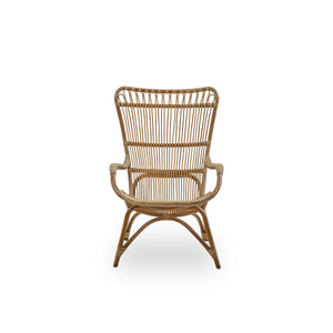 Der Hochlehner wird von erfahrenen Korbmachern in nachhaltigem indonesischem Rattan handgefertigt. Sika-Design verwendet sorgfältig ausgewähltes Rattan für die Möbelproduktion, um höchste Qualität zu gewährleisten. Rattan wird oft mit Bambus verglichen, aber im Gegensatz zu Bambus, der hohl ist, handelt es sich bei Rattan um ein massives Material. Rattan ist ein bemerkenswert starkes und unverwüstliches Material – daher erhalten Sie ein einzigartiges Designerstück, das Generationen überdauern kann.